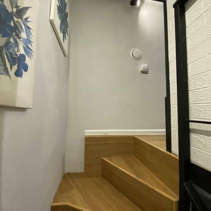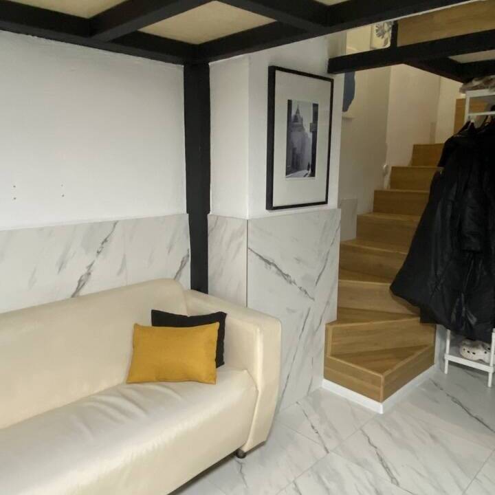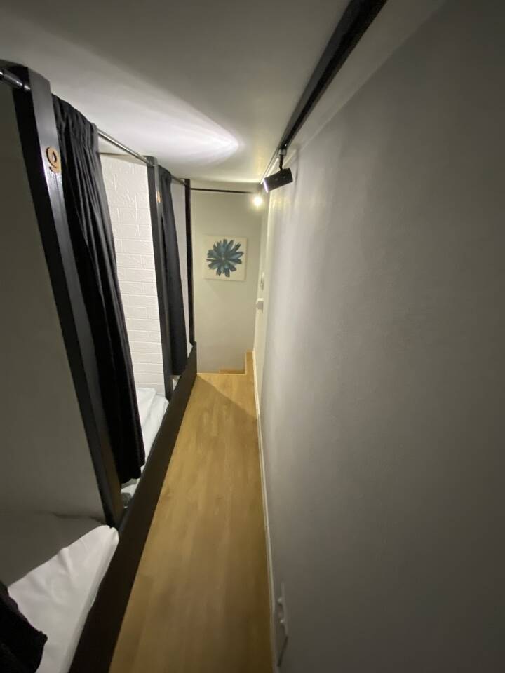 Полноценная кухня-гостинная, где можно приготовить еду. Плита, холодильник, микроволновка, чайник, посуда, кофемашина